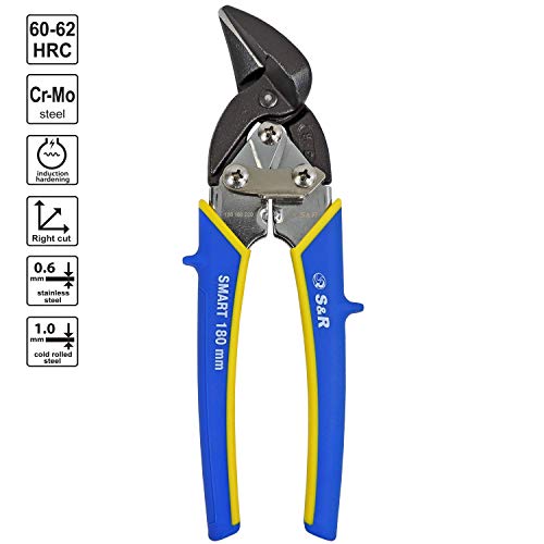S&R Mini metalen schaar ideale serie, gesmede en geharde chroom-molybdeen-messen HRC 60-62, sterk en wendbaar, 180 mm, rubberen handgrepen, compacte metalen schaar